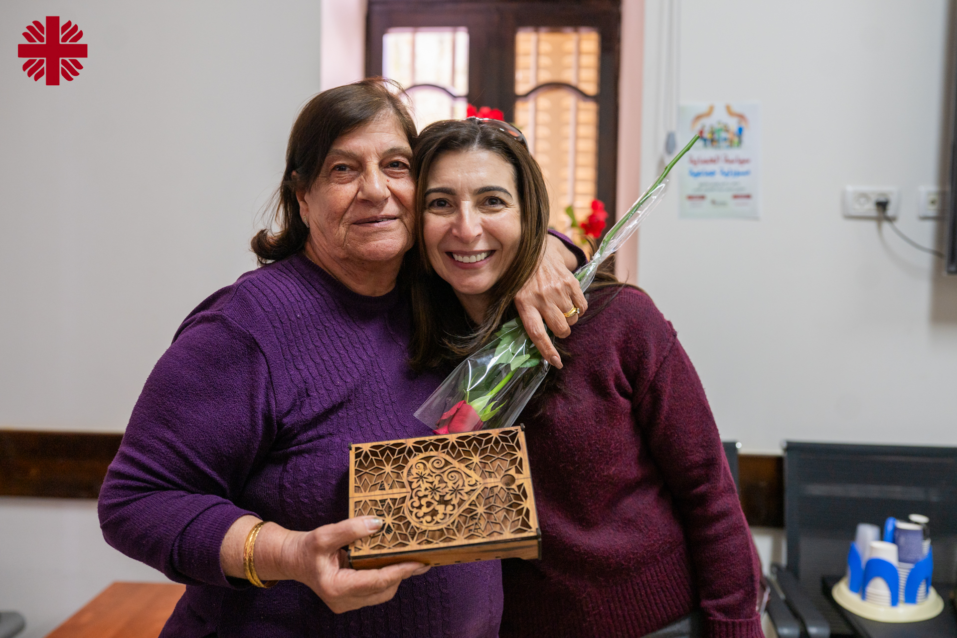 This spirit of appreciation was reflected in a meaningful way when Mr. Anton Asfar, Secretary General of Caritas Jerusalem, visited the female employees to extend his greetings and appreciation on this occasion. His presence was a simple but powerful gesture of gratitude and recognition, one that carried warmth and closeness. The visits also included Baytouna Elderly Day Care Center in Ramallah, Taybeh Medical & Rehabilitation Center, and Ramallah Vocational Training Center, where the same spirit of care, respect, and heartfelt appreciation was shared. These moments may seem small, but they carry deep meaning, because they remind women that their efforts are seen, their presence matters, and their work is truly valued.
